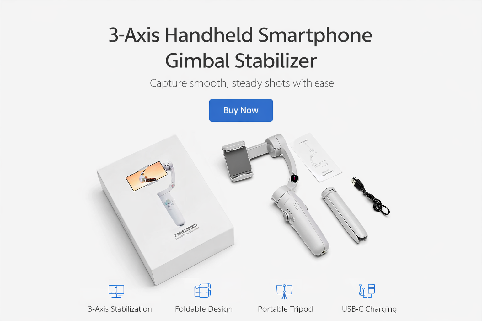 Professional quality smooth video banaye apne smartphone se. Yeh 3-Axis gimbal stabilizer aapke videos ko ultimate stability aur smoothness pradaan karta hai, chahe aap vlog banayein ya reels.