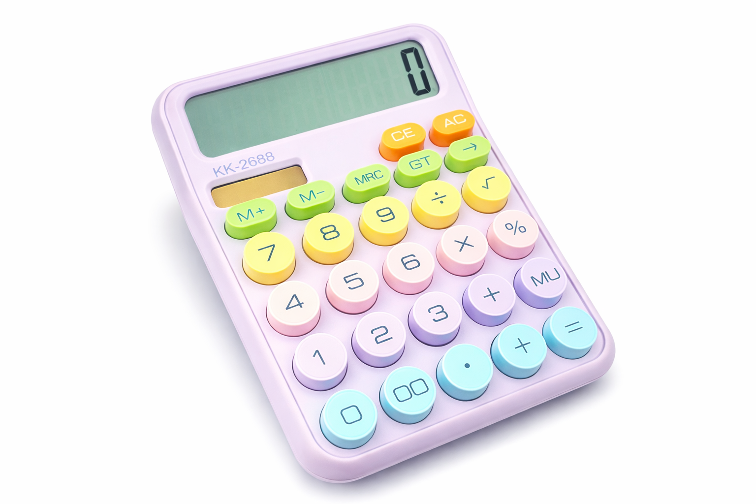 The KK-2688 desktop calculator combines style and functionality in a stunning pastel design. With its vibrant colors, it adds a touch of sophistication to any desk—ideal for home, office, or study spaces.