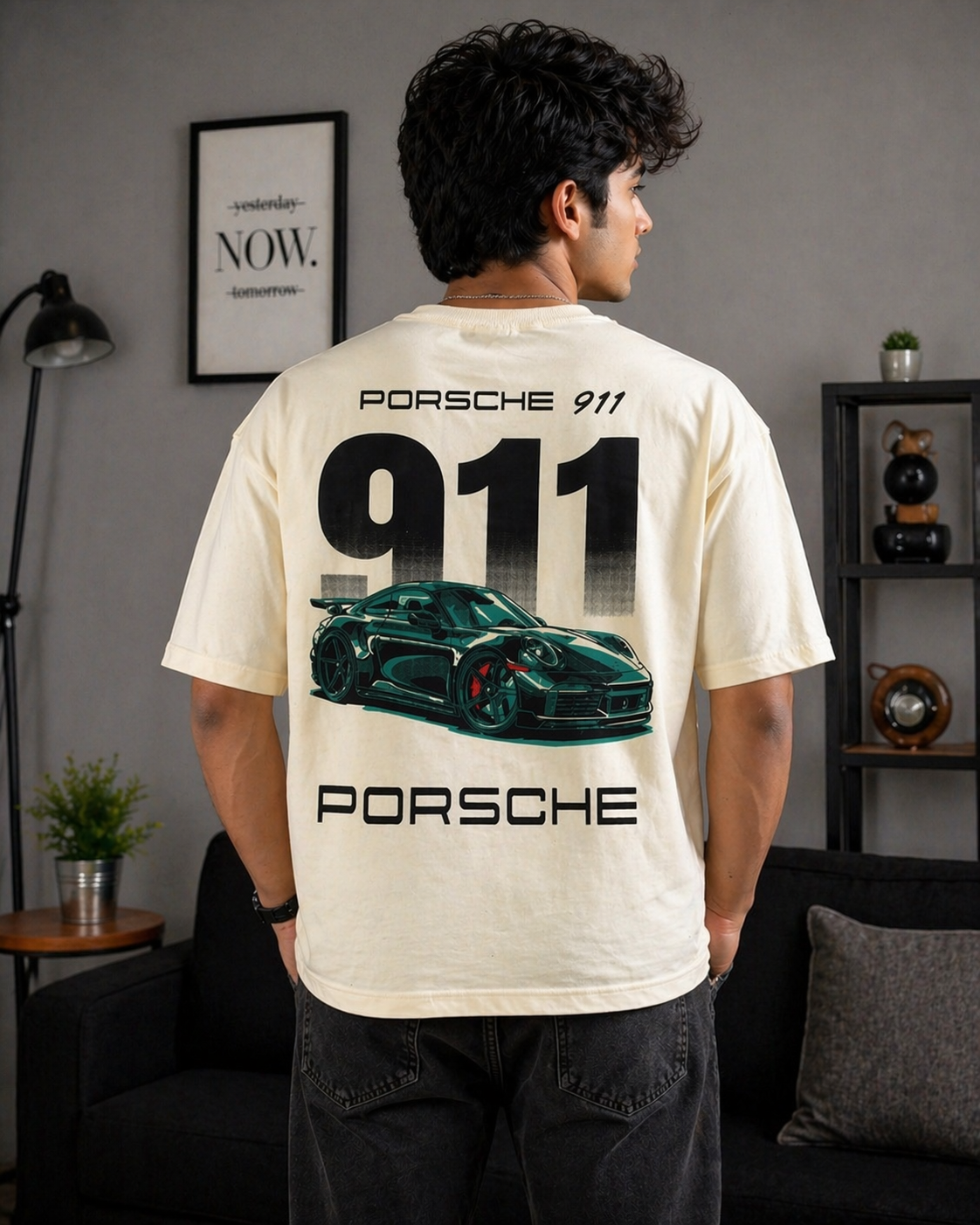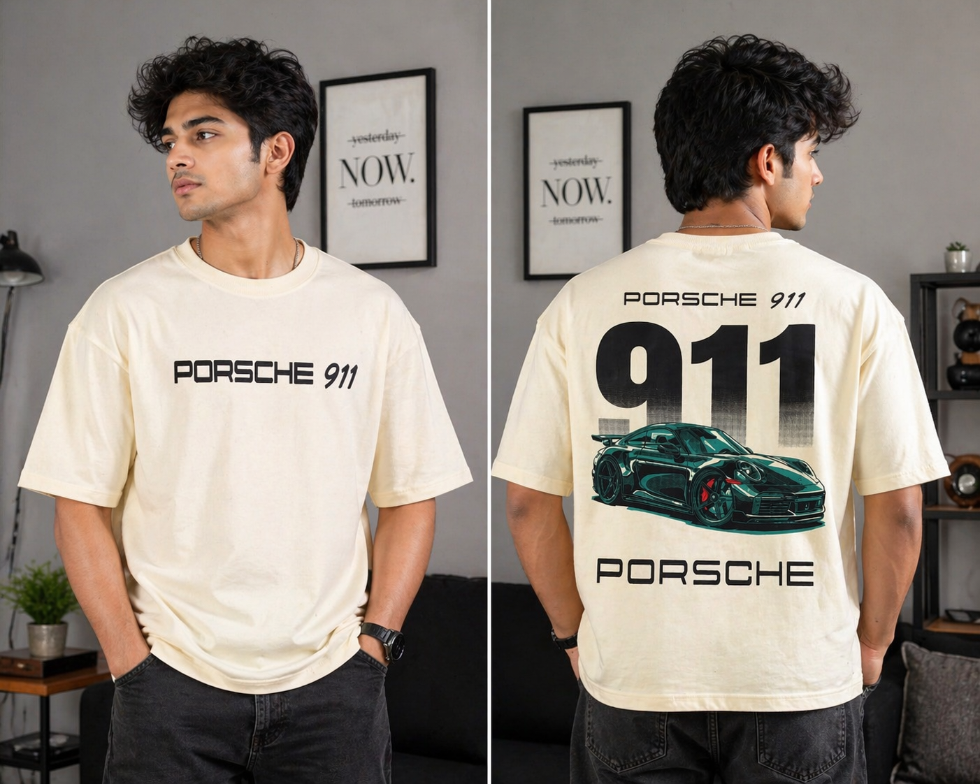 Men’s Premium Porsche 911 Printed T-Shirt (Front & Back Design) M Size